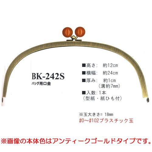 イナズマ くし型 バッグ用玉付がま口 口金 幅25cm BK-242S(シルバー)