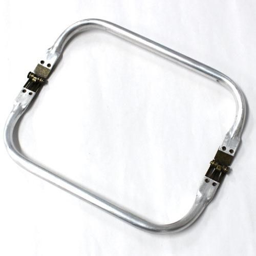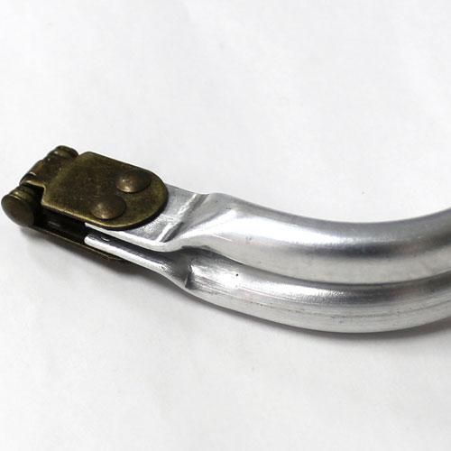 マザーバッグや小物入れなどに大きく開くアルミフレームの口金。アルミなので軽く仕上がります。しっかりと閉まるので、ファスナーなどが不要です。大きく開いたまま固定できるので、中のものが見やすく、取り出しやすいです。