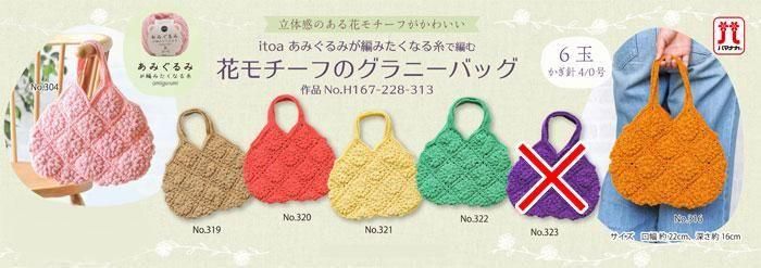 ハマナカ 花モチーフのグラニーバッグ 着分セット(あみぐるみが編みたくなる糸6玉・編図)【着分16番】