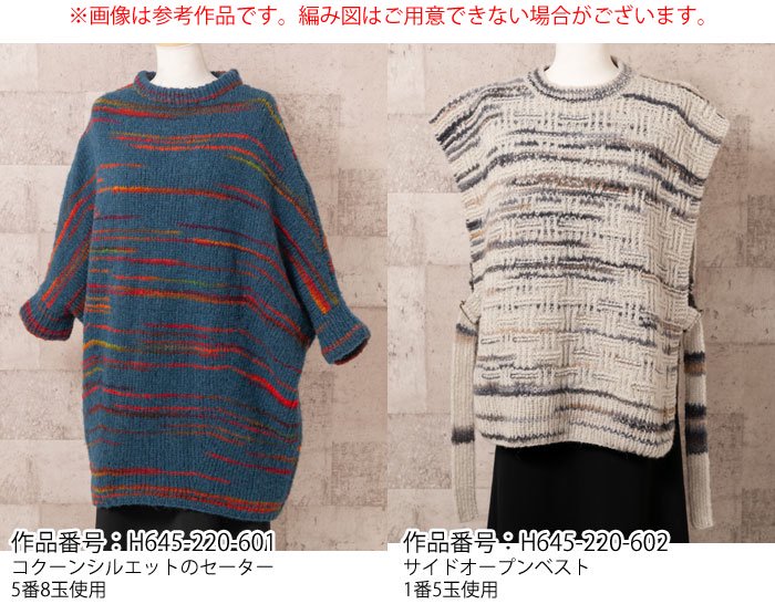 ●糸使用量(平均):プルオーバー5〜6玉/カーディガン5〜6玉/ベスト3〜4玉