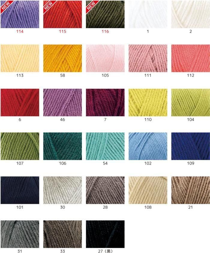 アクリル100% とは思えない、柔らかい肌触りと光沢が特長の大人気糸です。