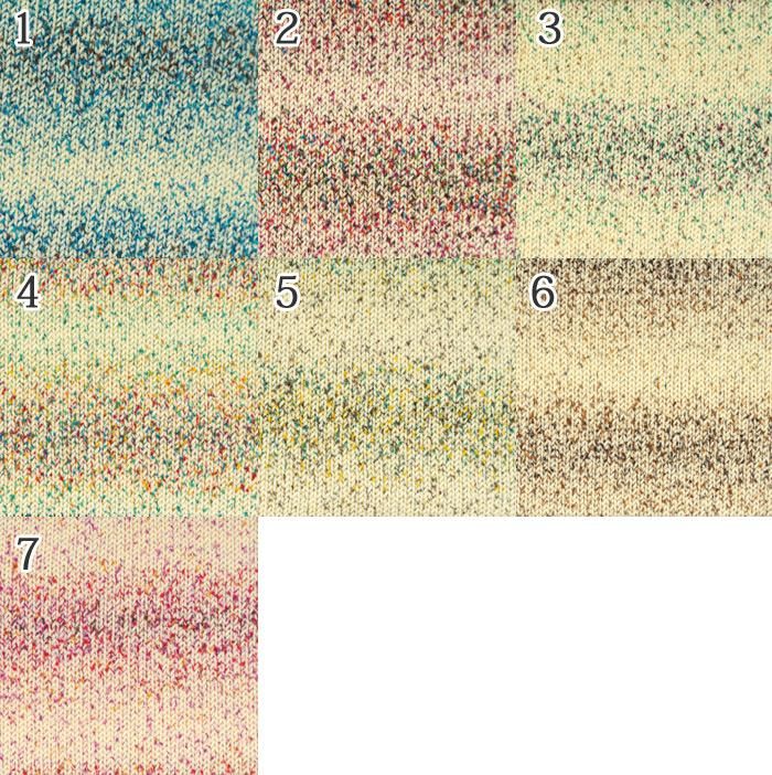 モルジアナは、点絣の色と密度が階調(グラデーション)風に繰り返し変化する編み地表情。アラブ世界の美意識の重要な要素である対称、反復、循環の様式がスプレープリントの変化で表現されています。色はアラブの建築や工芸品から取られています。