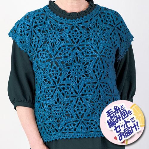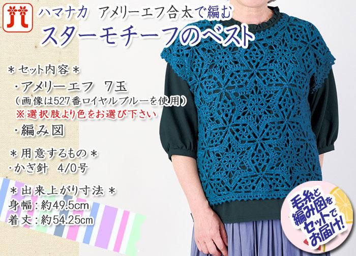 ハマナカ スターモチーフのベスト 着分セット(アメリーエフ合太 7玉・編図)編み物キット【着分48番】