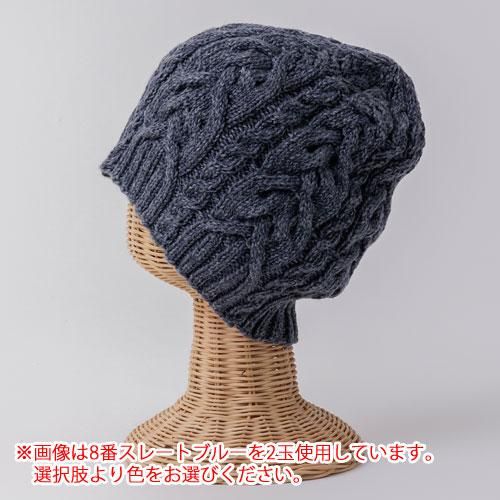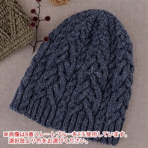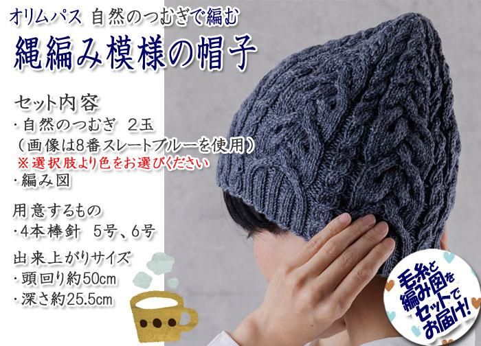 オリムパス 縄編み模様の帽子 着分セット(自然のつむぎ2玉・編図)【着分42番】編み物キット