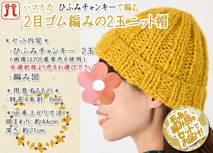 ハマナカ 2目ゴム編みの2玉ニット帽 着分セット(ひふみチャンキー2玉・編図)【着分58番】