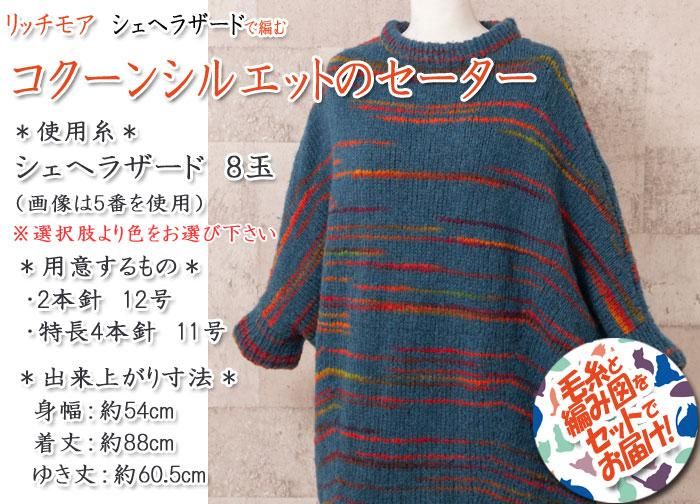 リッチモア コクーンシルエットのセーター 着分セット(シェヘラザード8玉・編図)【着分25番】