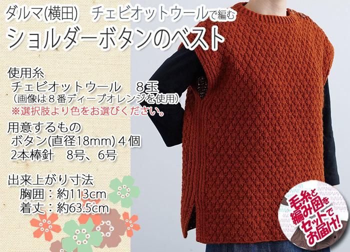 ダルマ(横田) ショルダーボタンのベスト 着分セット(チェビオットウール8玉・編図)【着分70番】