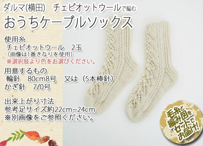 ダルマ(横田) おうちケーブルソックスA 着分セット(チェビオットウール2玉・編図)【着分121番】
