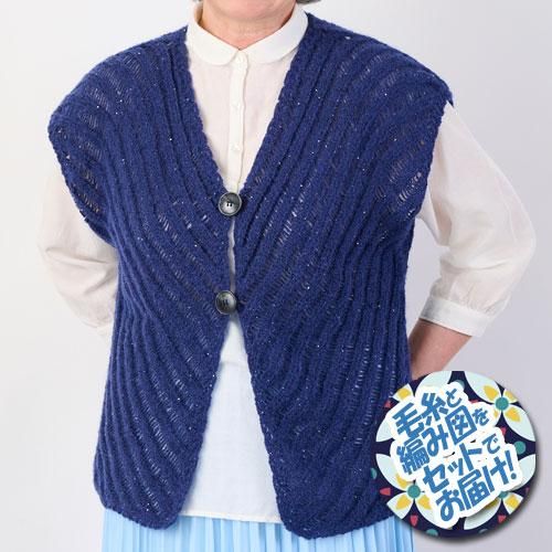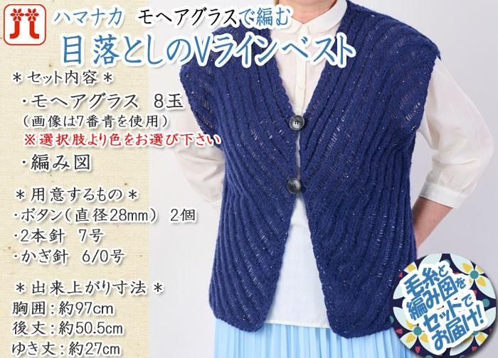 ハマナカ 目落としのVラインベスト 着分セット(モヘアグラス8玉・編図)【着分85番】