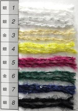 モヘアグラスは、近年再流行のスパンコールをちりばめたモヘヤ混糸です。スパンコールは極小の直径1mmサイズを使用することで肌への当たりがソフトなのが特長です。モヘヤのヘアリー感とスパンコールの控えめな輝きを同時にお楽しみいただけます。