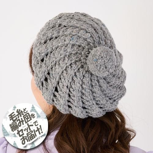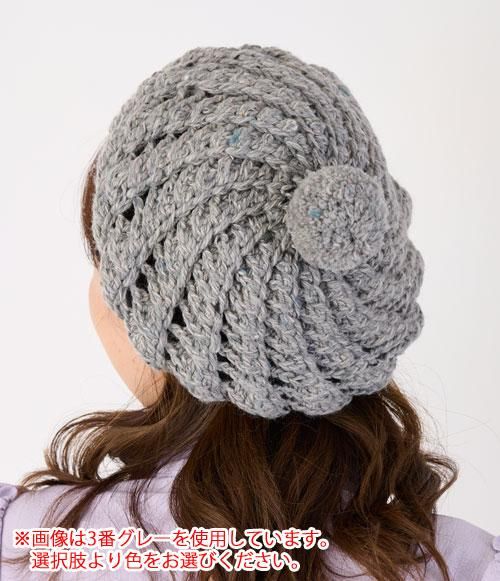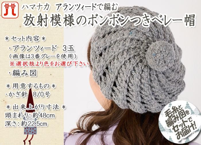 ハマナカ 放射模様のボンボンつきベレー帽 着分セット(アランツィード3玉・編図)【着分96番】