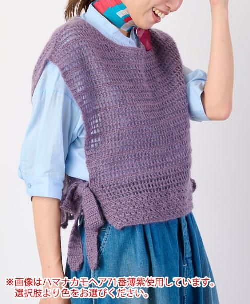 ハマナカ かぎ針編みのサイドリボンベスト 着分セット(ハマナカモヘア6玉・編図)【着分161番】