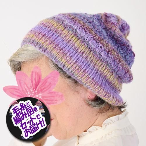 ハマナカ ドット模様の2玉帽子 着分セット(ディーナ2玉・編図) 編み物キット【着分166番】