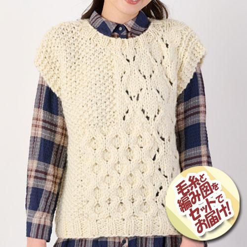 ハマナカ パッチワーク風の模様編みベスト 着分セット(ひふみチャンキー10玉・編図)【着分163番】