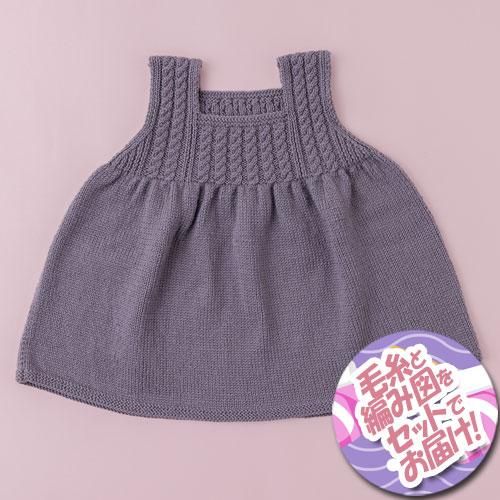 オリムパス 縄編みヨークのワンピース(キッズ) 着分セット(ロイヤルベビー5玉・編図)【着分118番】