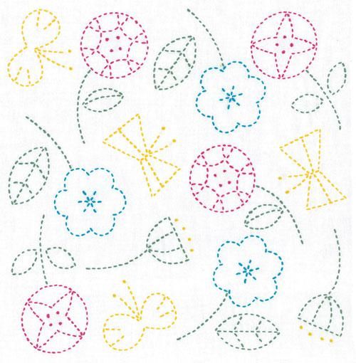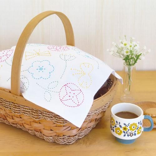 【日本の伝統刺繍】オリムパス 刺し子 北欧モチーフの花ふきん フラワー