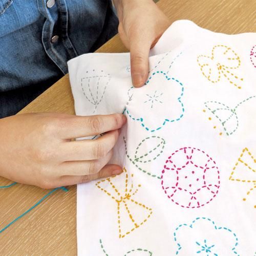 ●キット内容:晒木綿 白(綿100%)、刺し子糸(綿100%)、刺し子針、図案付説明書