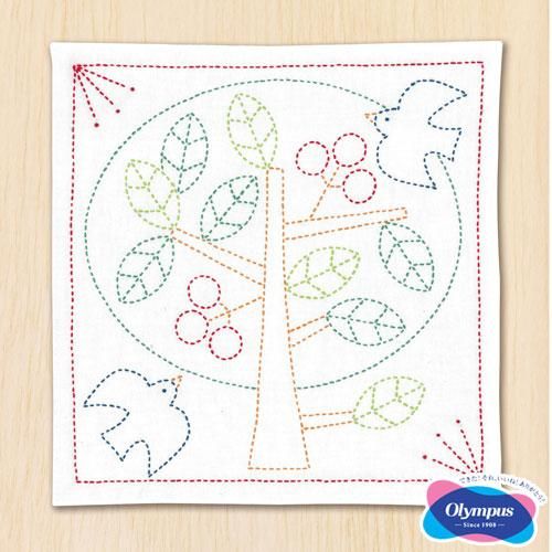 【日本の伝統刺繍】オリムパス 刺し子 北欧モチーフの花ふきん ツリー