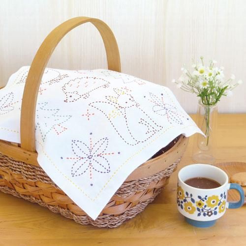 【日本の伝統刺繍】オリムパス 刺し子 北欧モチーフの花ふきん フォレスト