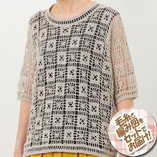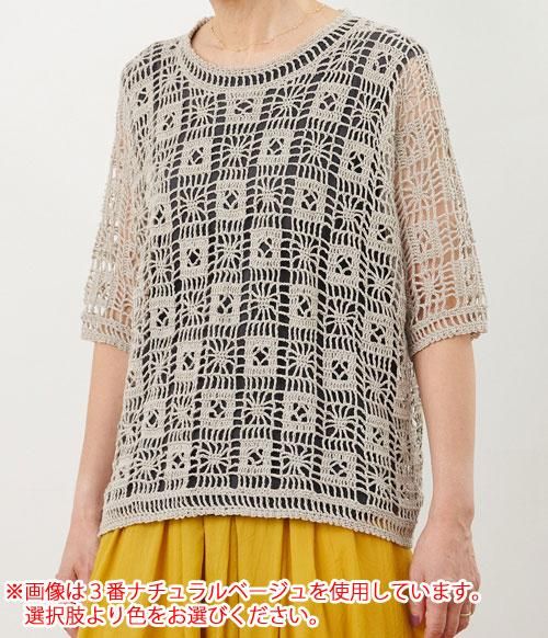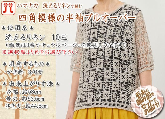 ハマナカ 四角模様の半袖プルオーバー 着分セット(洗えるリネン10玉・編図)【着分4番】
