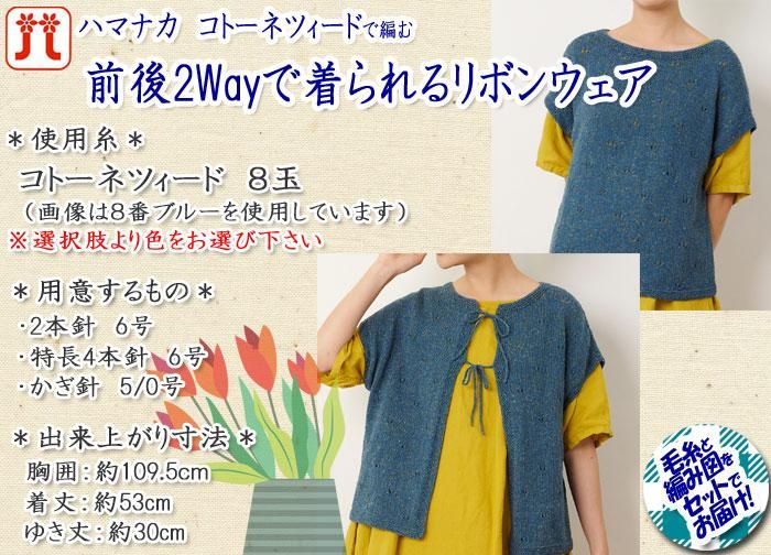 ハマナカ 前後2Wayで着られるリボンウェア 着分セット(コトーネツィード8玉・編図)【着分24番】