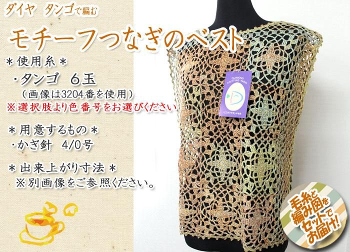 ダイヤ モチーフつなぎのベスト 着分セット(タンゴ6玉・編図)【着分1番】