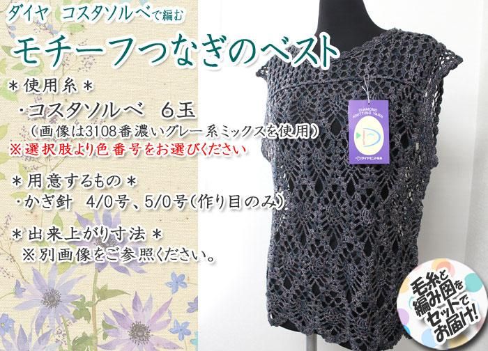 ダイヤ パイナップル模様のベスト 着分セット(コスタソルベ6玉・編図)【着分2番】