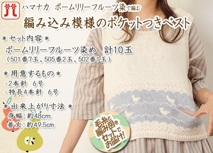 ハマナカ 編み込み模様のポケットつきベスト 着分セット(ポームリリーフルーツ染 計10玉・編図)【着分77番】