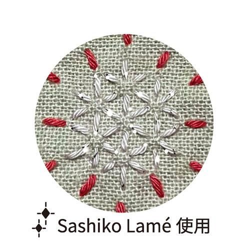 刺し子用ラメ糸「Sashiko Lame」を使用した刺し子花ふきんキットです。