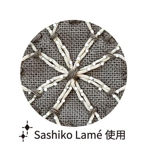 ラメの輝きをよりお楽しみいただくために、「Sashiko Lame」使用部分には、ラメの特徴が出やすいくぐり刺しが柄に取り入れられています。
