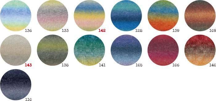 エクセレントモヘア〈カウント10〉の段染めタイプ。クオリティはそのままに、ゆっくりと色調の変化する ロングピッチグラデーションに仕上げています。 引き揃えに使っていただいても糸の持ち味が引き立ちます。