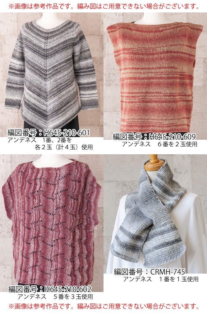 ●糸使用量(平均):プルオーバー 4〜5玉、カーディガン 4〜5玉、ベスト 3〜4玉