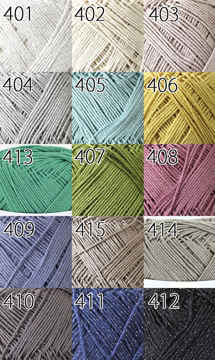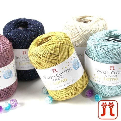 洗濯で丸洗いできる、ウォッシュコットンクロッシェのラメ入りかぎ針タイプ。