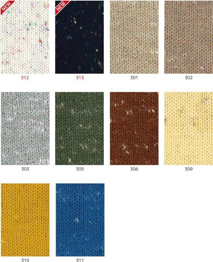 落ち着いた色合いの中に、さりげなく顔を出すネオンカラーのネップが、編地に豊かな表情を与えます。