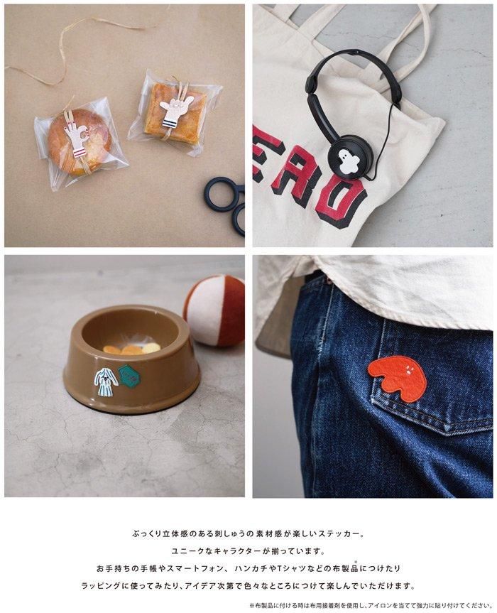 ぷっくり立体感のある刺しゅうの素材感が楽しいステッカー。お手持ちの手帳やスマートフォン、ハンカチやTシャツなどお好きな場所につけることができます。シンプルな物につけるだけでオリジナルアイテムに。