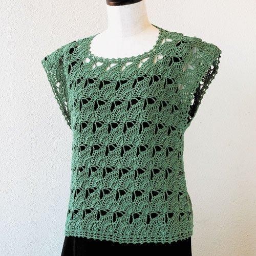 ハマナカ 扇模様のブレードつなぎベスト 着分セット(ウォッシュコットンクロッシェ9玉・編図)【着分71番】編み物キット