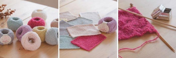 綿を起毛させているのでお肌の刺激になりにくく、モヘアなどの起毛糸のちくちくが苦手な方にもお手にとってほしいやさしい糸です。