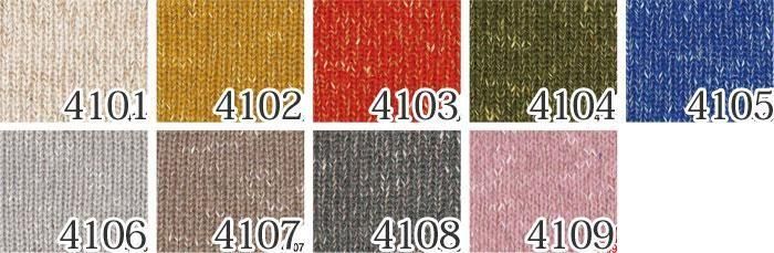 編むとそれぞれの糸の特徴によって絣調にも見え、また和柄のような色目と相まって、レトロなテイストが感じられます。