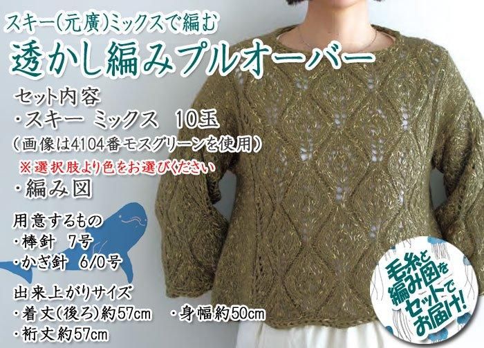 スキー(元廣)  透かし編みプルオーバー 着分セット(ミックス10玉・編図)【着分06番】