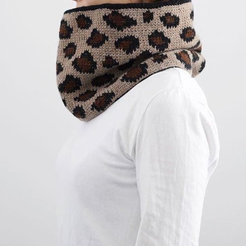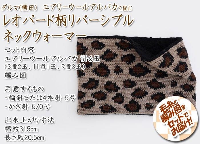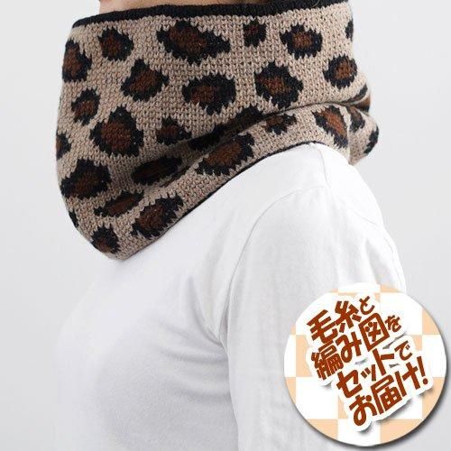 ダルマ(横田) レオパード柄リバーシブルネックウォーマー 着分セット(エアリーウールアルパカ計6玉・編図)【着分10番】 編み物キット