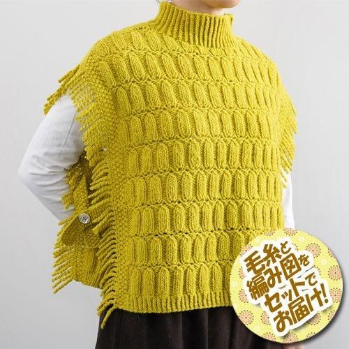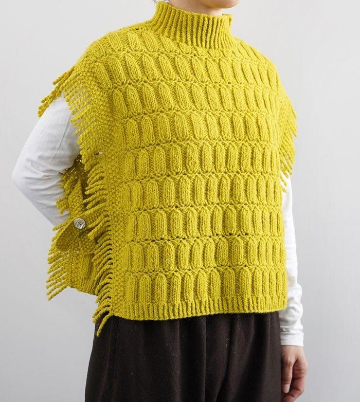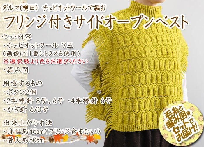 ダルマ(横田)フリンジ付きサイドオープンベスト 着分セット(チェビオットウール7玉・編図)【着分16番】 編み物キット