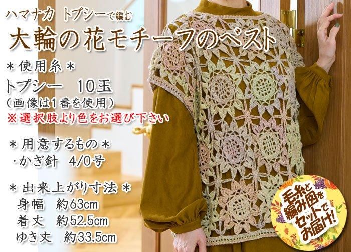 ハマナカ 大輪の花モチーフのベスト 着分セット(トプシー10玉・編図)【着分107番】 編み物キット