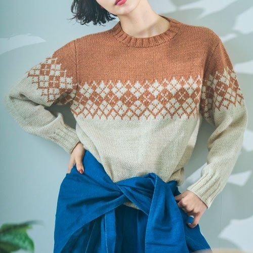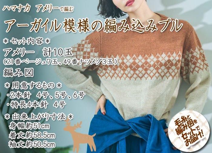 ハマナカ アーガイル模様の編み込みプル 着分セット(アメリー計10玉・編図)【着分104番】 編み物キット