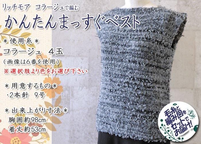 リッチモア コラージュのかんたんまっすぐベスト 着分セット(コラージュ4玉・編図)【着分69番】 編み物キット