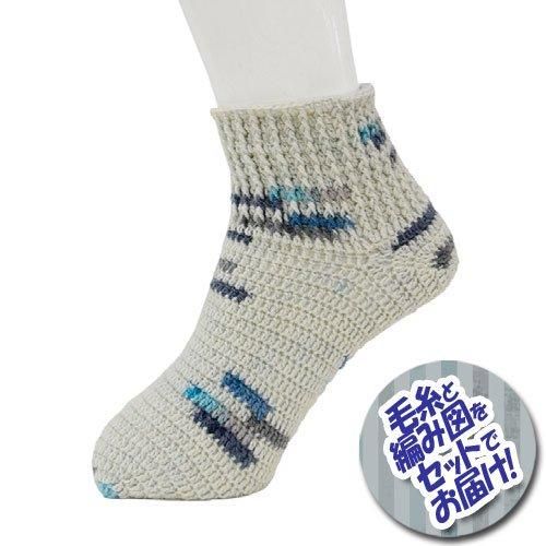内藤商事 かぎ針編みのお家ソックス 着分セット(ウールソックプリント1玉・編図) 【着分06番】 編み物キット