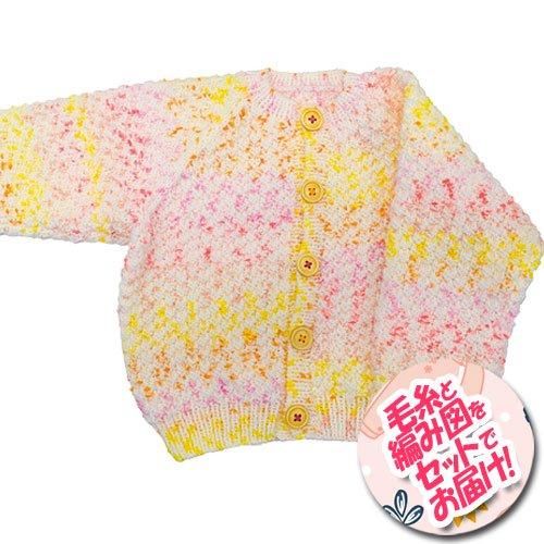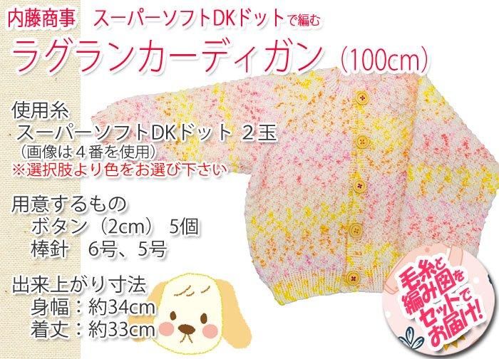 内藤商事 ラグランカーディガン(キッズ100cm) 着分セット(スーパーソフトDKドット2玉・編図)【着分09番】 編み物キット