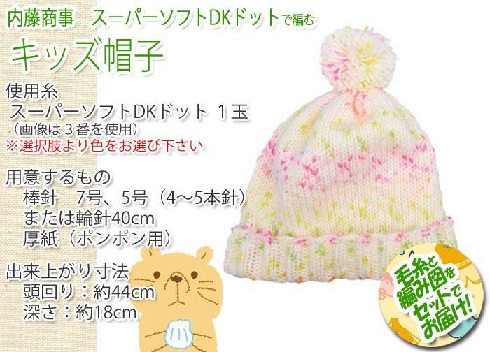 内藤商事 キッズ帽子 着分セット(スーパーソフトDKドット1玉・編図)【着分12番】 編み物キット
