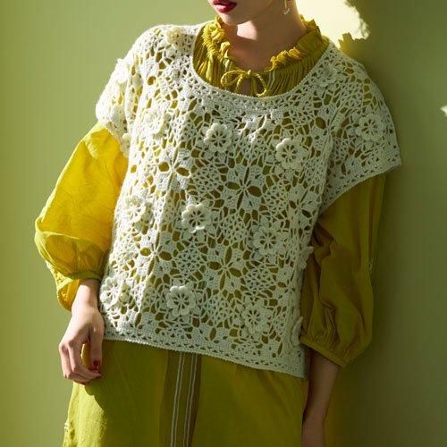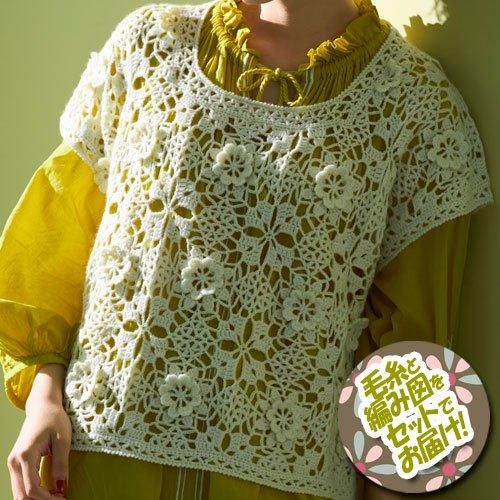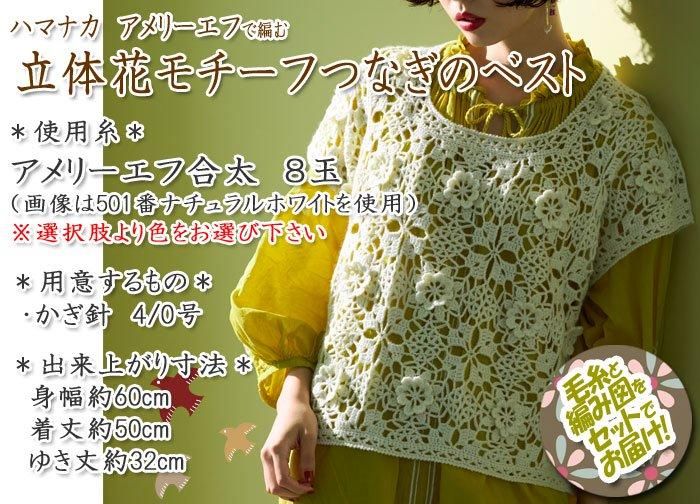 ハマナカ 立体花モチーフつなぎのベスト 着分セット(アメリーエフ合太 8玉・編図)【着分15番】 編み物キット