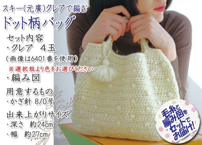 スキー(元廣)  ドット柄バッグ 着分セット(クレア4玉・編図)【着分25番】 編み物キット