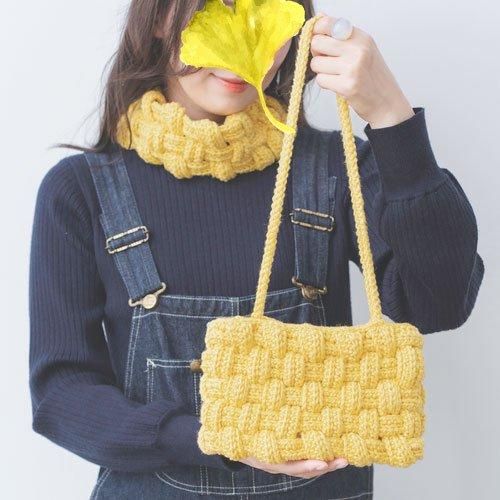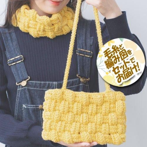 オリムパス ブロック模様のバッグとネックウォーマー 着分セット(自然のつむぎ並太3玉・編図)【着分58番】 編み物キット